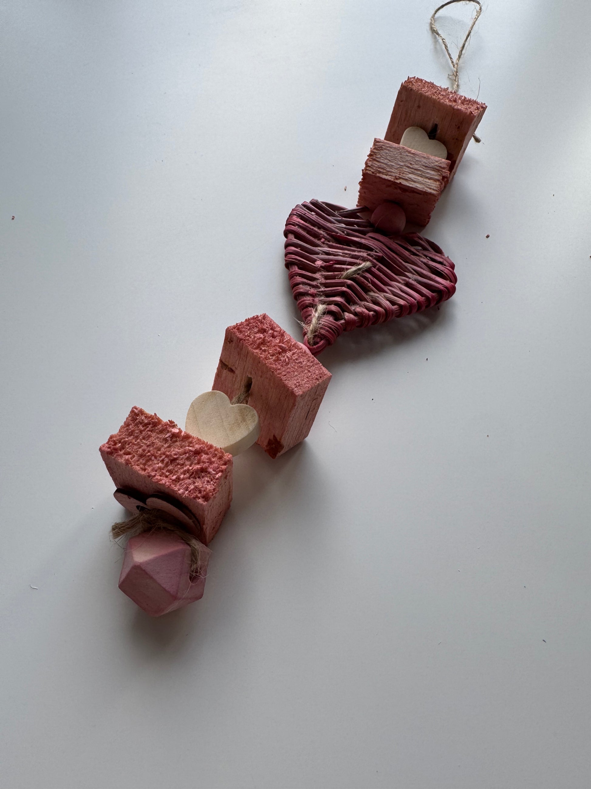 The Sweetheart Hanger is a safe and healthy option for your rabbit's chewing needs. Designed to promote healthy teeth and prevent boredom, this throw toy is a must-have for any rabbit owner. With its durable design and safe materials, you can rest assured that your furry friend will love playing with this toy. Featuring balsa wood, pine wood, a vine heart and jute twine.
